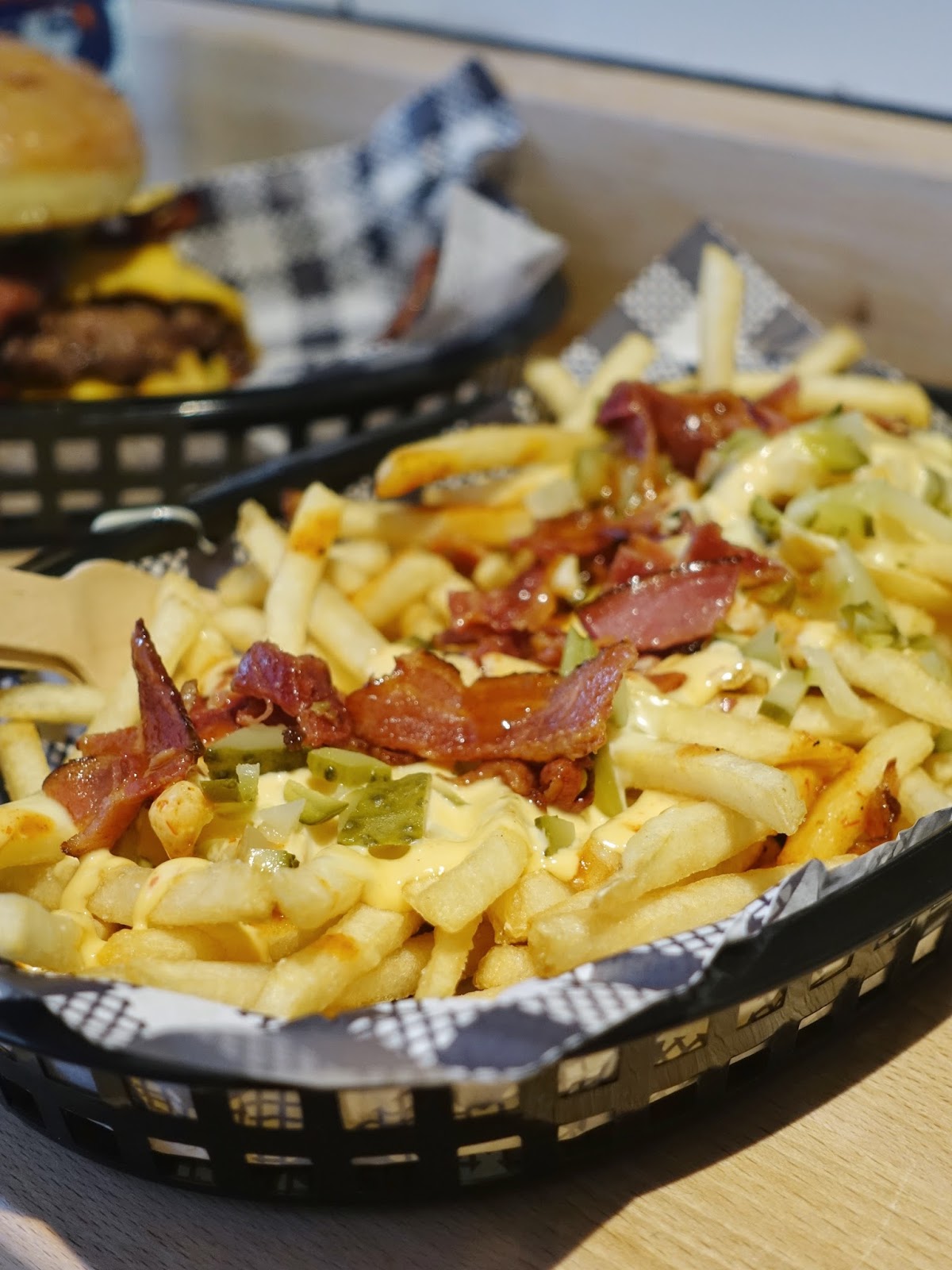 Jalapeno aioli, liquid cheese, Westmont chilli pickles, maple bacon, hot sauce. Again, how smart is that, a combo of sweet, sour, salty and spicy, you call that a party in your mouth, just can't stop eating it.